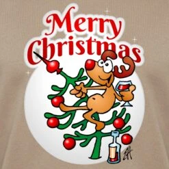 Reindeer Is Having A Drink On Santa Claus Cream Heather Pink