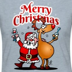 Merry Christmas – Santa Claus And His Reindeer Heather Ice Blue