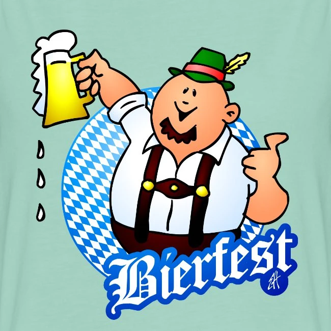 Bierfest II Hans In Lederhosen With A Mug Of Beer. Dusty Mint Blue