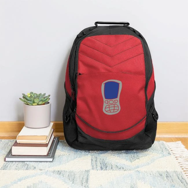 - Front-zippered pocket with organizer panel and headphone port
