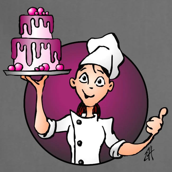 Pastry Chef With A Big Pink Cake In Close Up Charcoal