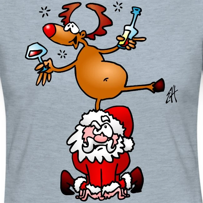 Reindeer Is Having A Drink On Santa Claus Heather Ice Blue