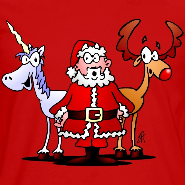 Santa, Reindeer, Unicorn Red