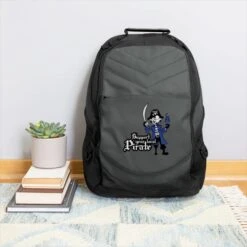- Front-zippered pocket with organizer panel and headphone port